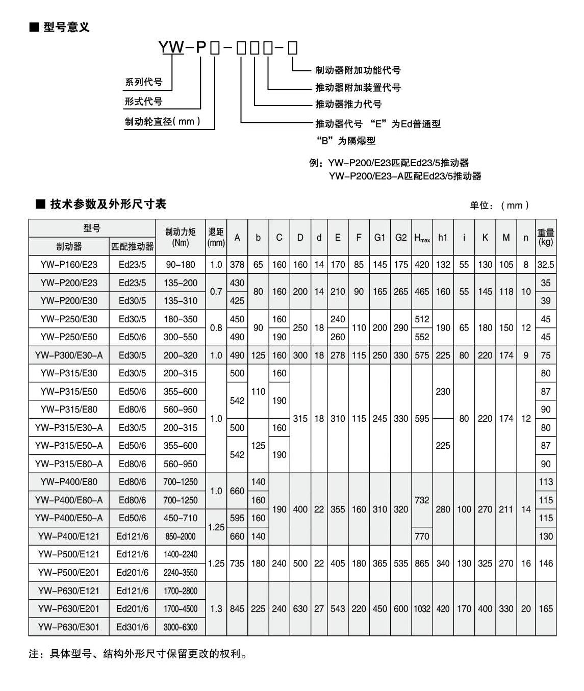 YWZ8.YWP系列電力液壓鼓式制動器的連接尺寸和制動力矩參數(shù)符合JB/ZQ4388-86和GB6333-86(帶A系列)標(biāo)準(zhǔn),技術(shù)要求符合JB / T6406-2006標(biāo)準(zhǔn),配套符合DIN15430標(biāo)準(zhǔn)的Ed系列推動器。